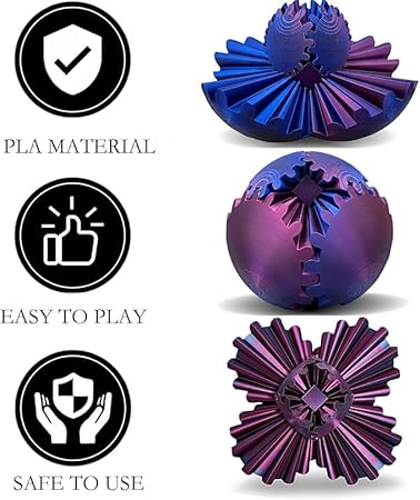 • 【3D Printed Gear Ball Fidget】The Gear ball Fidget is an innovative finger toy designed to provide stress relief and anxiety reduction effects. GearSphere – The Steampunk Whirling Wonder Fidget is made of high-quality 3D printed materials with a smooth surface and durable structure.