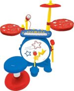 - Become a rock’n roll star with this 3-in-1 drum set! Children can play the piano, rock the drums, and sing along to all their favourite songs!