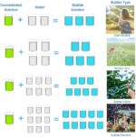 - 🌈 To Get Different Bubbles: 1L Lulu Home bubble concentrated solution can be diluted to 2.5 Gallon. ifferent proportion will get you different bubbles. For example, 1 cups of Water + 2 cups of concentrated solution = bubble solution for Giant Bubbles(for more proportion, please refer to the picture or the product description below).