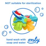 - Easy grip design is ideal for little hands and helps with coordination; Dual surfaced teether.