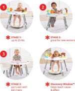 - Designed in collaboration with a pediatrician, our baby activity center supports a “whole body” approach to play and learning. Our unique Discovery Window lets baby see their feet while they play to learn cause and effect